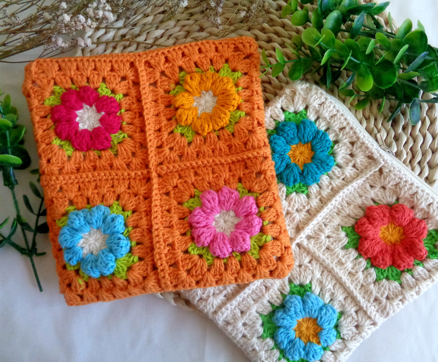 If you are beginner you will learn and enjoy making the puffy flowers granny squares, pattern include the complete assembly linen pouch interior and zipper