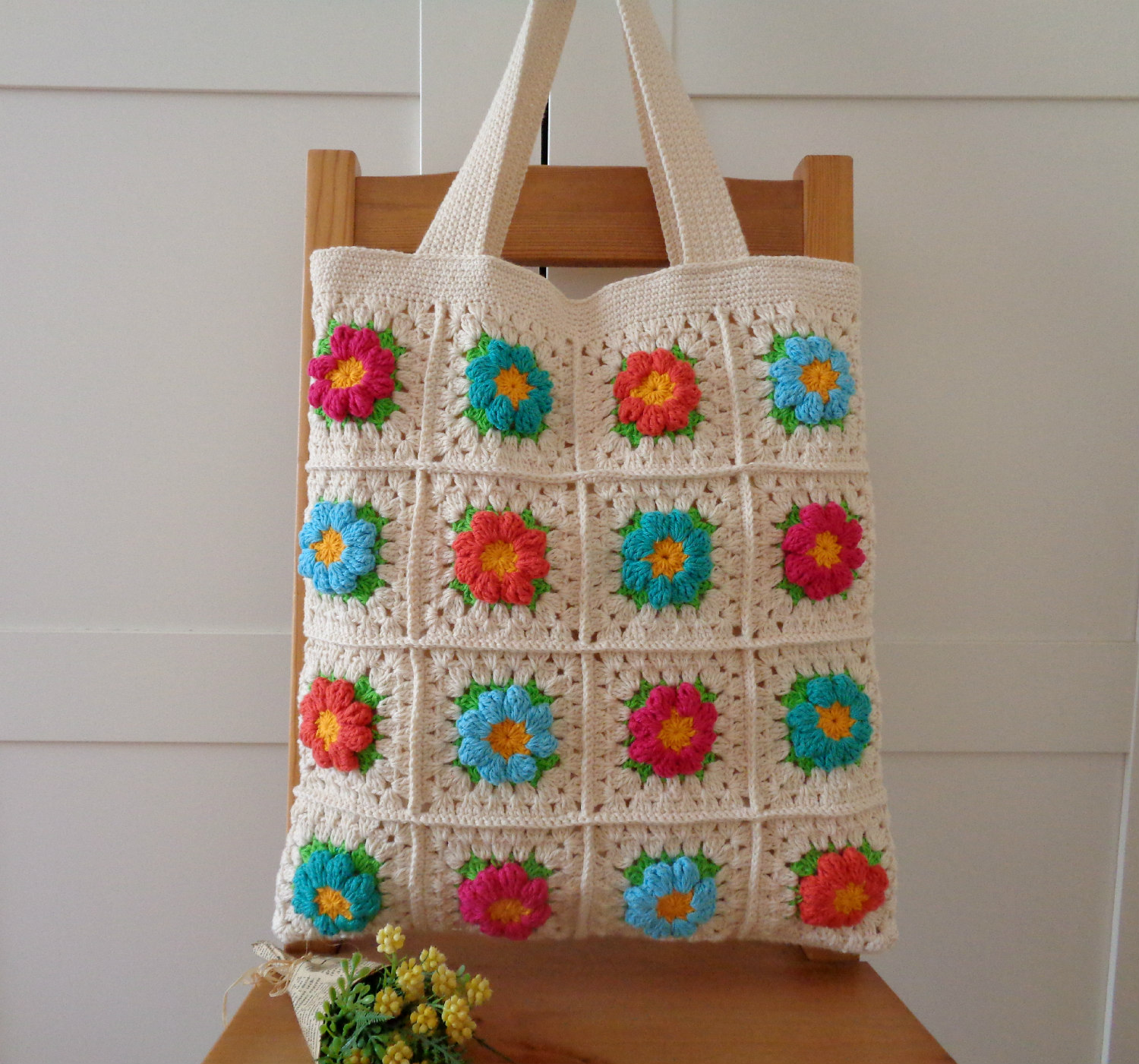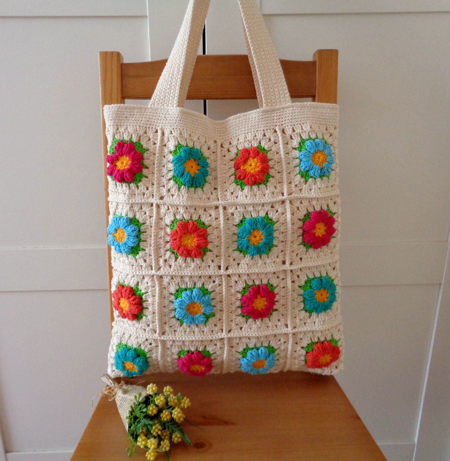 Coquette Tote Bag is a lovely and easy granny squares flowers tote Bag, great pattern for all crochet levels, if you are beginner you will learn and enjoy making the puffy flowers granny squares, pattern include the complete assembly and linen bag interior, how to make the handles and how to join the granny squares